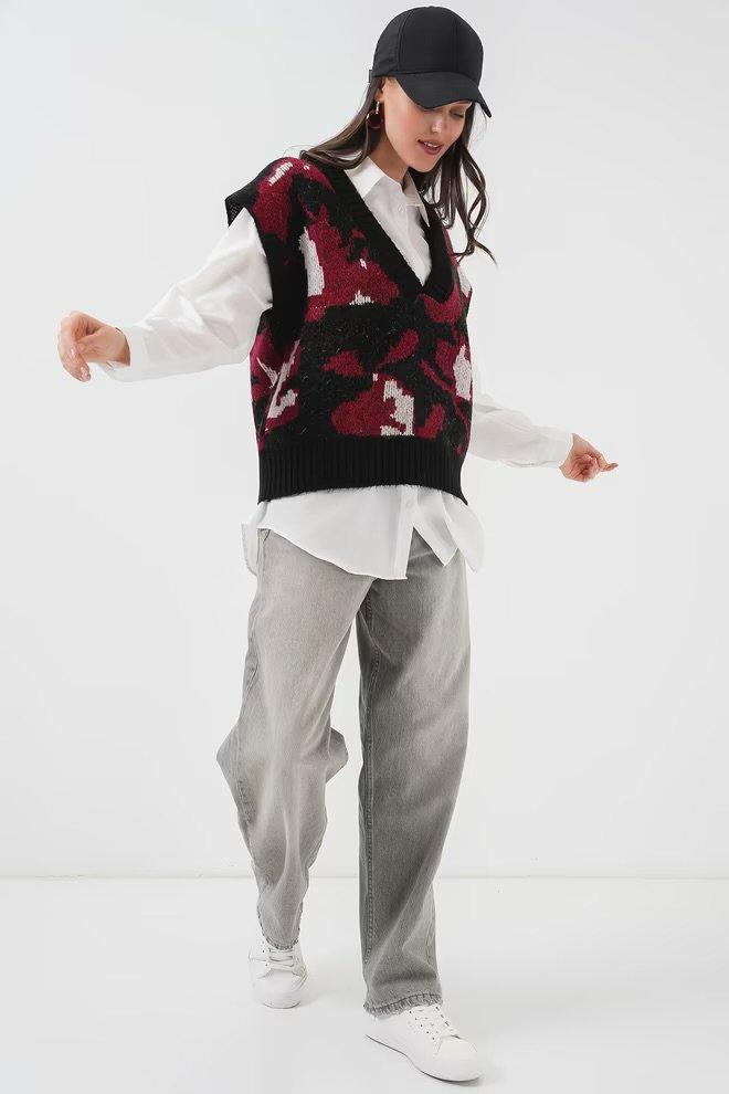 Pull sans manches noir & rouge à motif abstrait – KIARA