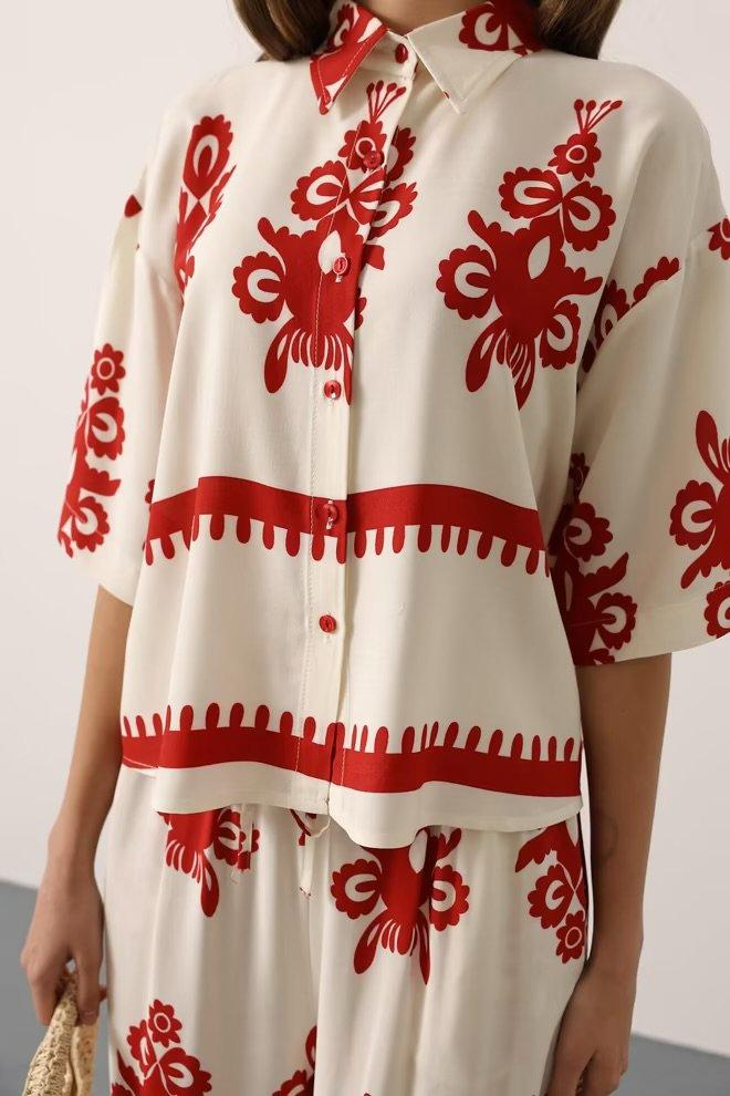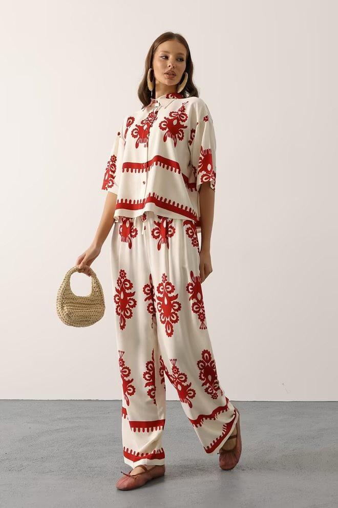 Ensemble chemise ample et pantalon imprimé rouge & blanc – KIARA