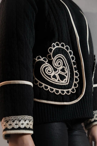 Blouson ethnique noir col V – KIARA
