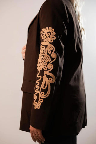 Veste blazer marron oversize à broderies – KIARA