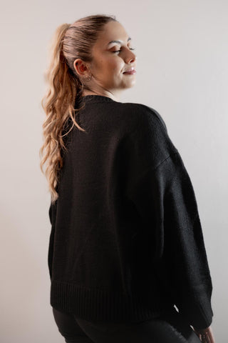 Veste noire bicolore avec col sherpa oversize – KIARA